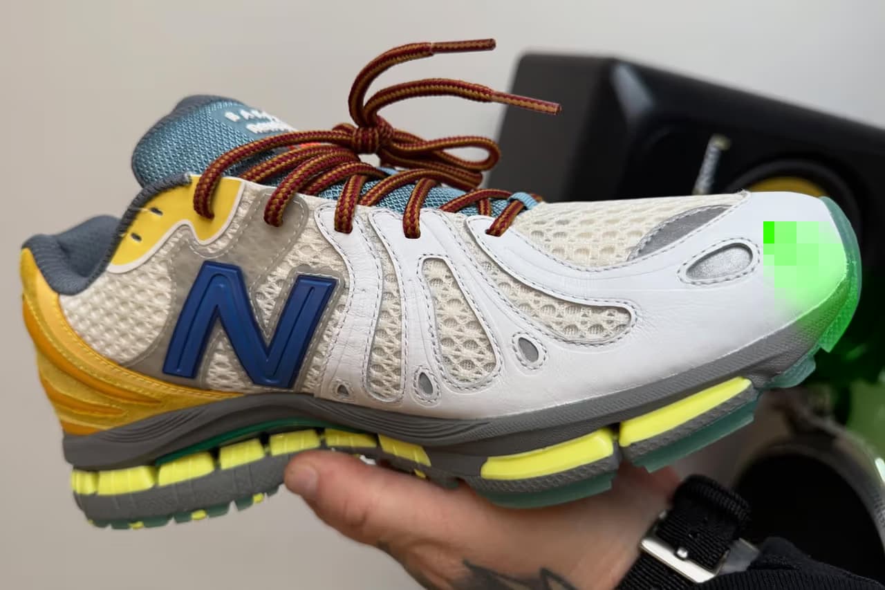 Net als de eerder geteasde colorway, en alle andere samenwerkingen met Action Bronson, bevat ook dit design uiteenlopende kleuren en moderne details. Het mesh bovenwerk van de 1890 heeft een lichtbeige tint, die mooi afsteekt tegen de donkerblauwe en gele details op het middenpaneel en de zool.