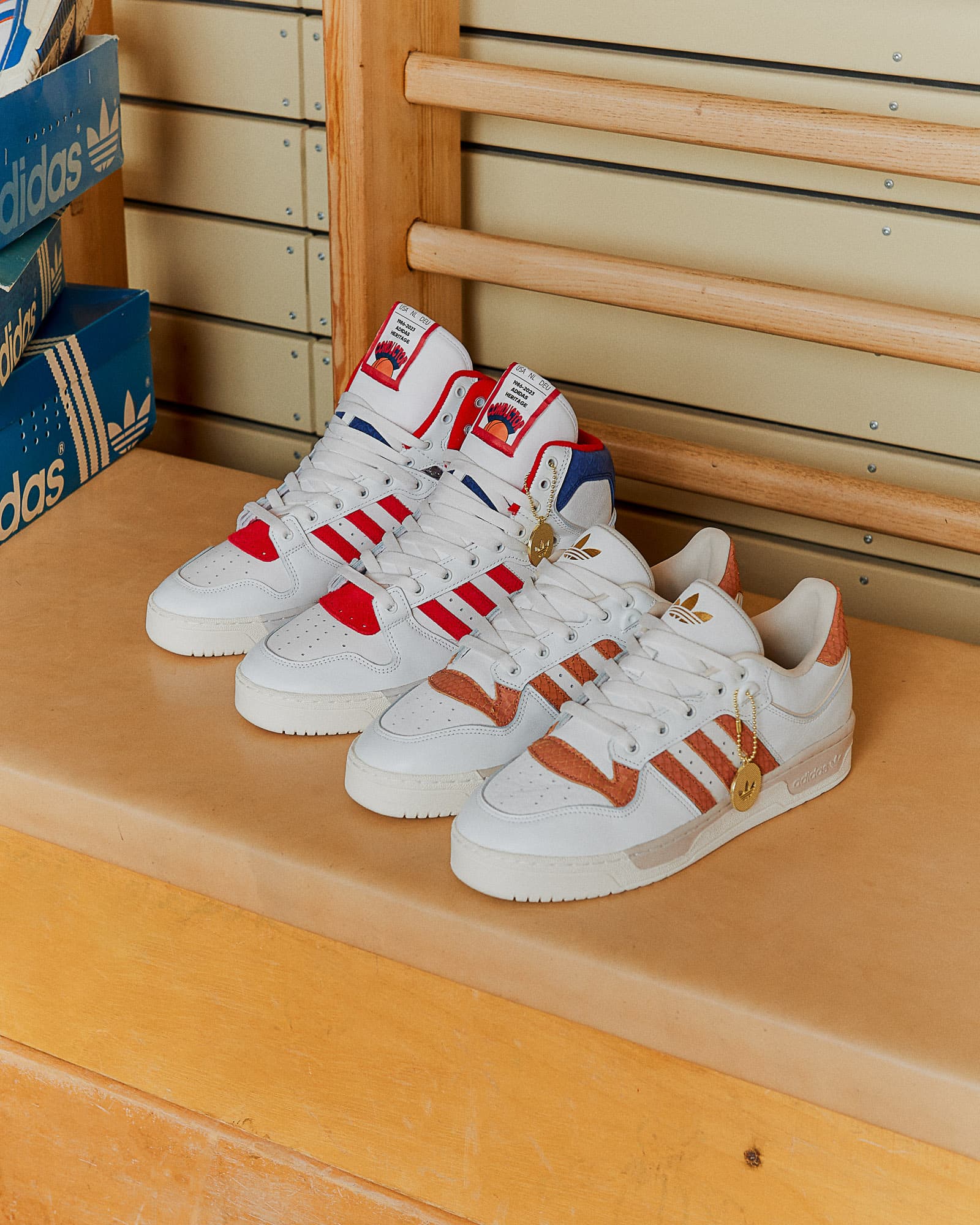 Het pack komt met het adidas Rivalry Low 86 en het adidas Conductor Hi silhouet. De sneakers komen met speciale OG-details en gebruiken hoogwaardige materialen, waaronder premium suède, slangenleer elementen en gouden accenten. Ontworpen door en voor sneaker liefhebbers.