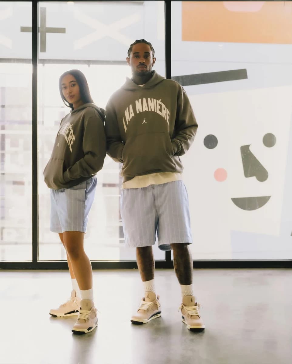 De A Ma Maniére x Air Jordan 4 ‘Fossil Stone’ komt daarnaast ook met bijbehorend apparel. De collectie komt met shirts, hoodies, shorts en meer. Bekijk hieronder de beelden van de sneaker en collectie en mis deze drop niet!