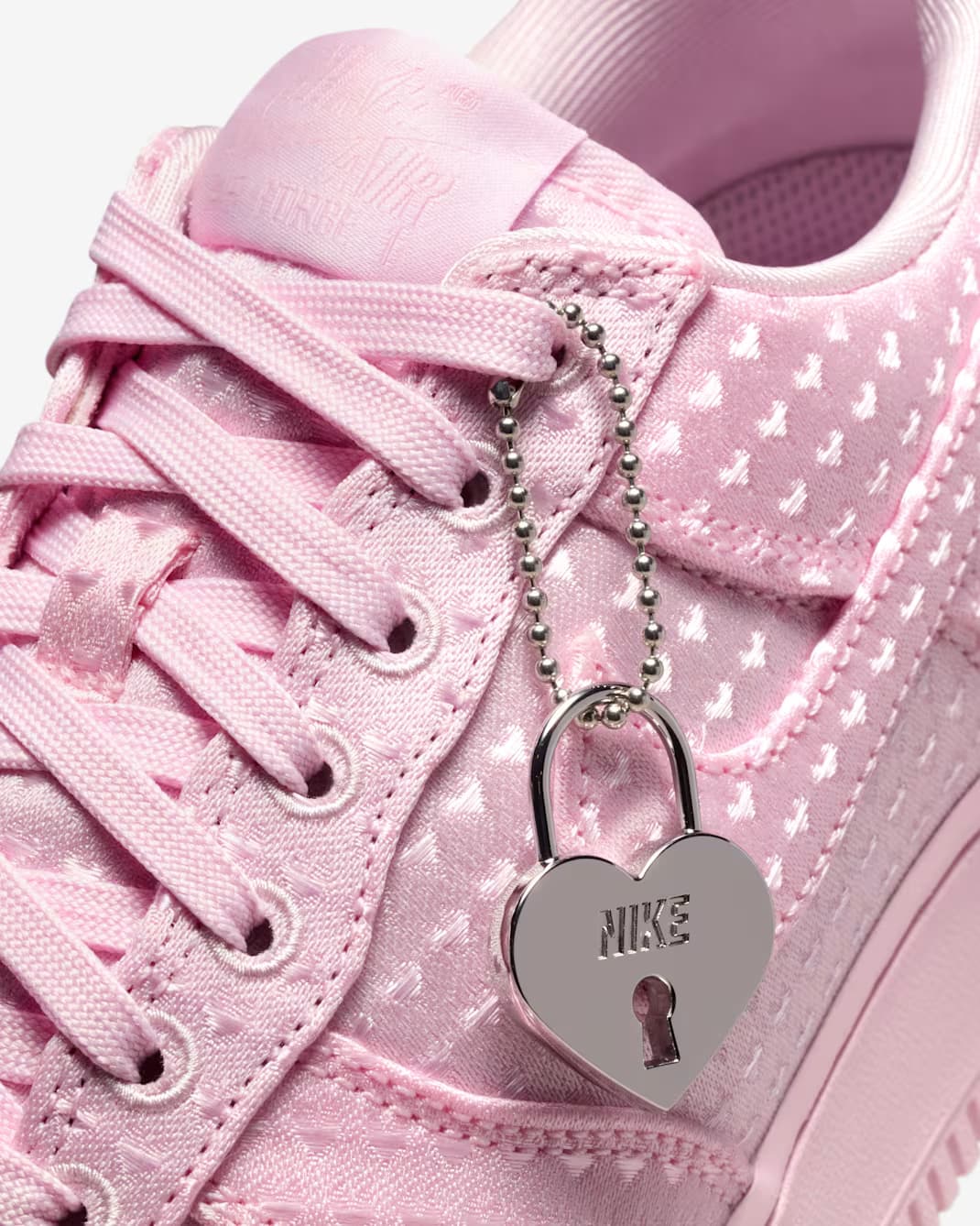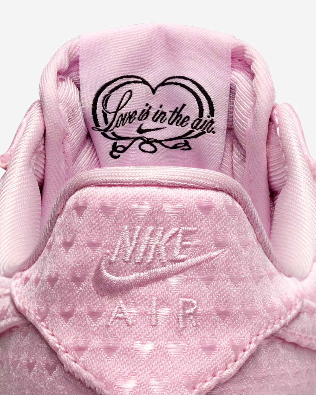 Het paar komt met verschillende romantische details, waaronder een hartvormige locket charm die aan de veters is bevestigd en de tekst “Love Is In The Air” op de tong. Daarnaast zien we ook een duidelijke verwijzing naar het thema op de binnenzool, waar een engeltje is afgebeeld.