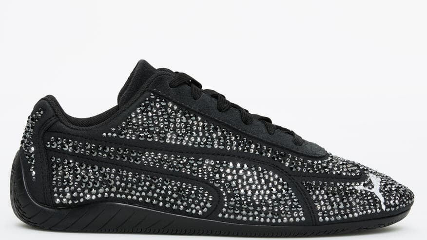 De Swarovski x PUMA Speedcat herinterpreteert dit klassieke model nu met een opvallend bovenwerk. Dit is versierd met niet minder dan 5.316 zwarte Swarovski-kristallen in vier verschillende maten. Deze kristallen zorgen voor een fonkelend effect dat het licht vanuit elke hoek vangt.