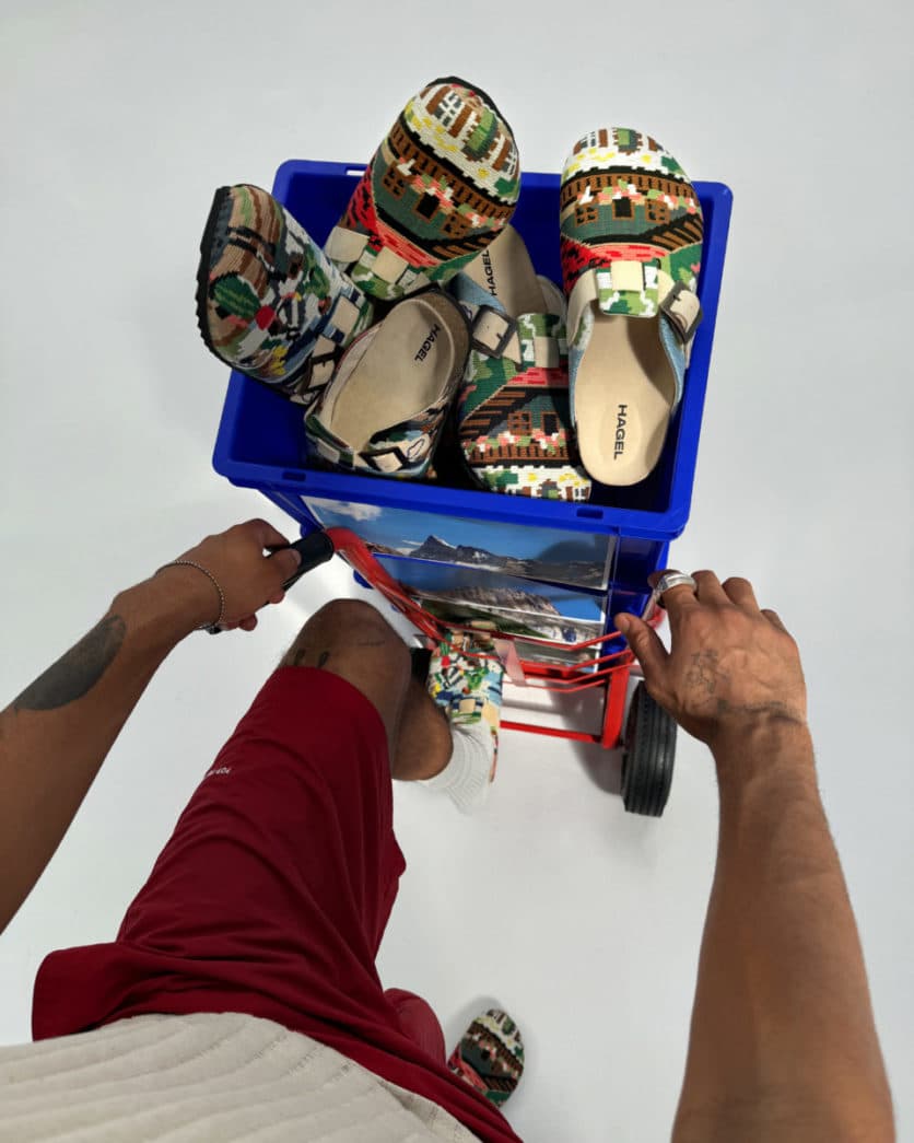 De afgelopen jaren heeft Studio HAGEL samengewerkt met namen als Off-White, Valentino en Suicoke. In 2022 lanceerde de studio de eerste eigen sneaker, de Shroud, en nu zien we de tweede drop van de recent uitgebrachte The Mule ‘Alps’.