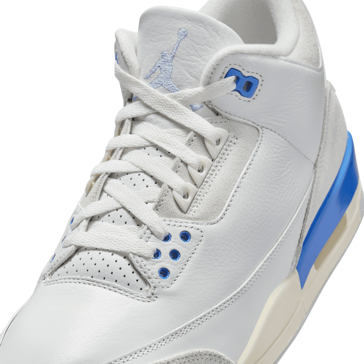 De Air Jordan 3 Retro ‘Lucky Shorts’ brengt, zoals de naam al zegt, ode aan deze sneaker. Het paar verschijnt in een wit met lichtblauwe colorway en gebruikt UNC-logo’s over het gehele design. Suède elementen op het bovenwerk en lichtblauwe details bij de veterogen geven het paar een luxueuze en frisse uitstraling.