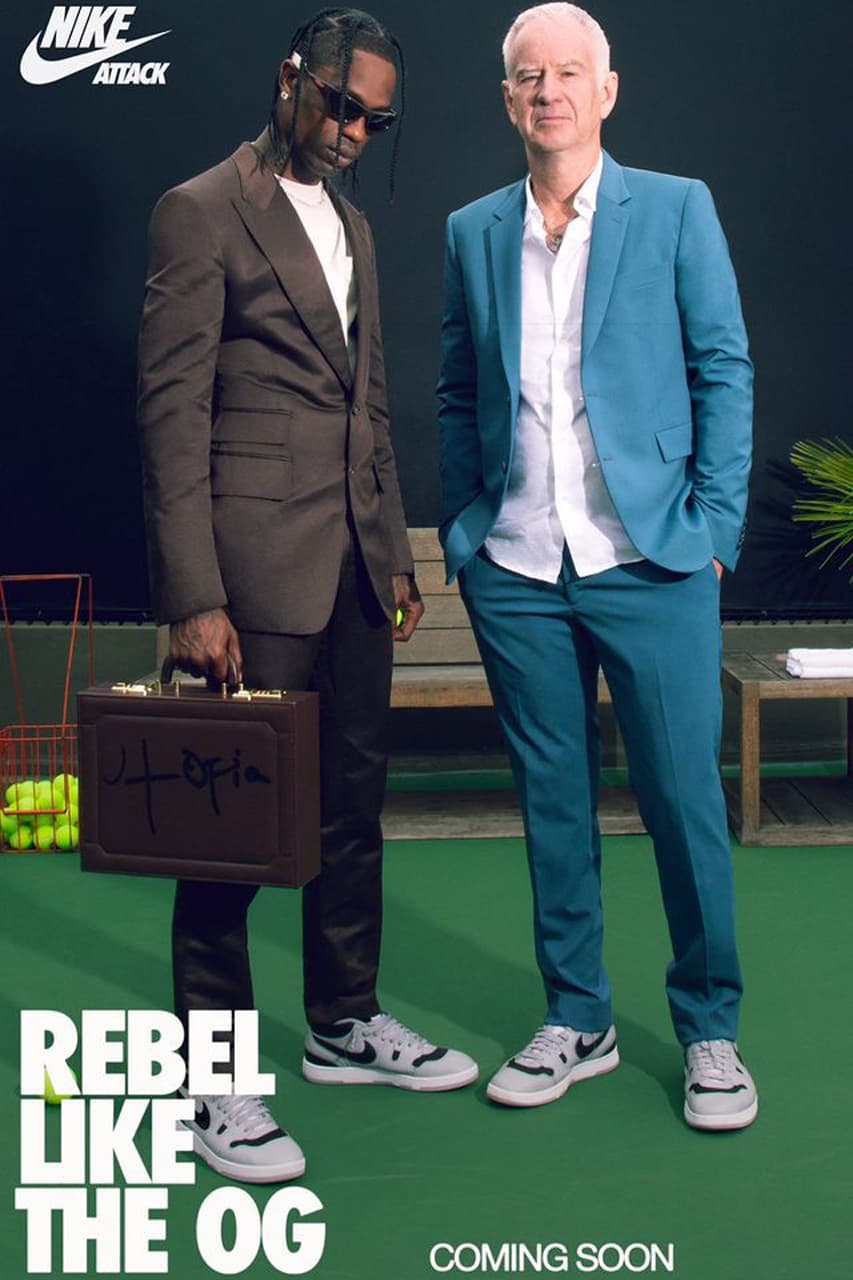 Nu keert de Mac Attack terug. Recent werd Travis Scott al gespot in de OG colorway van de sneaker. In een Nike campagne zien we de twee sterren terug op het tennisveld met aan de voet, de Mac Attack. Ook is Scott te zien in een unreleased Cactus Jack x Nike shorts.